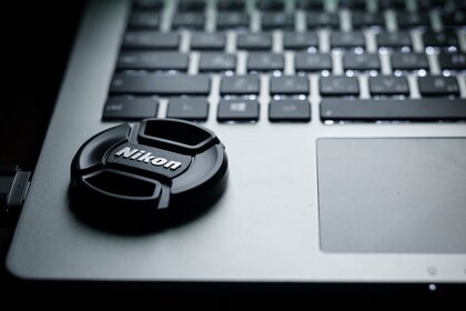 Pokrywa aparatu leży na laptopie