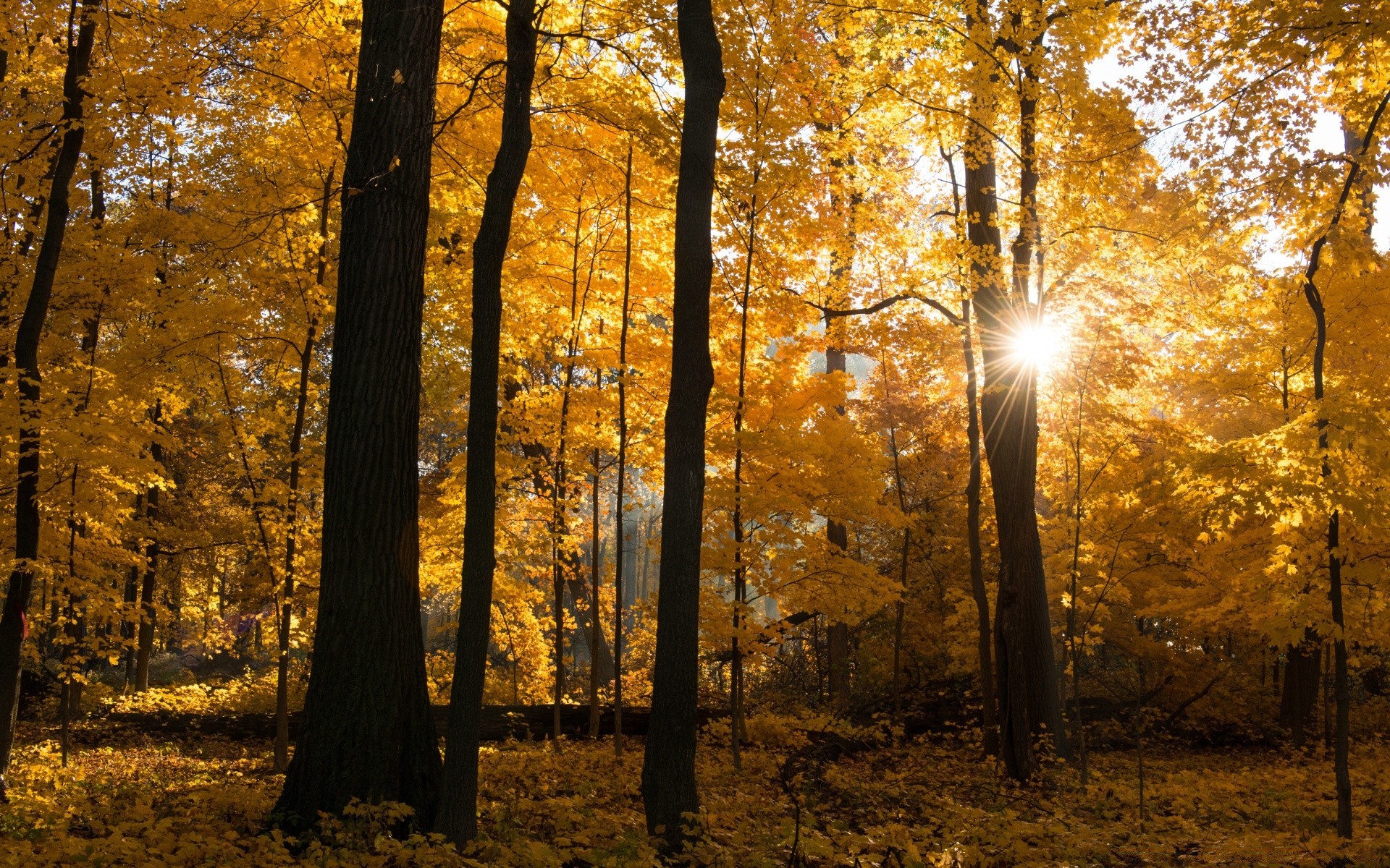 Promienie słońca przebijają się przez gęstą roślinność lasu