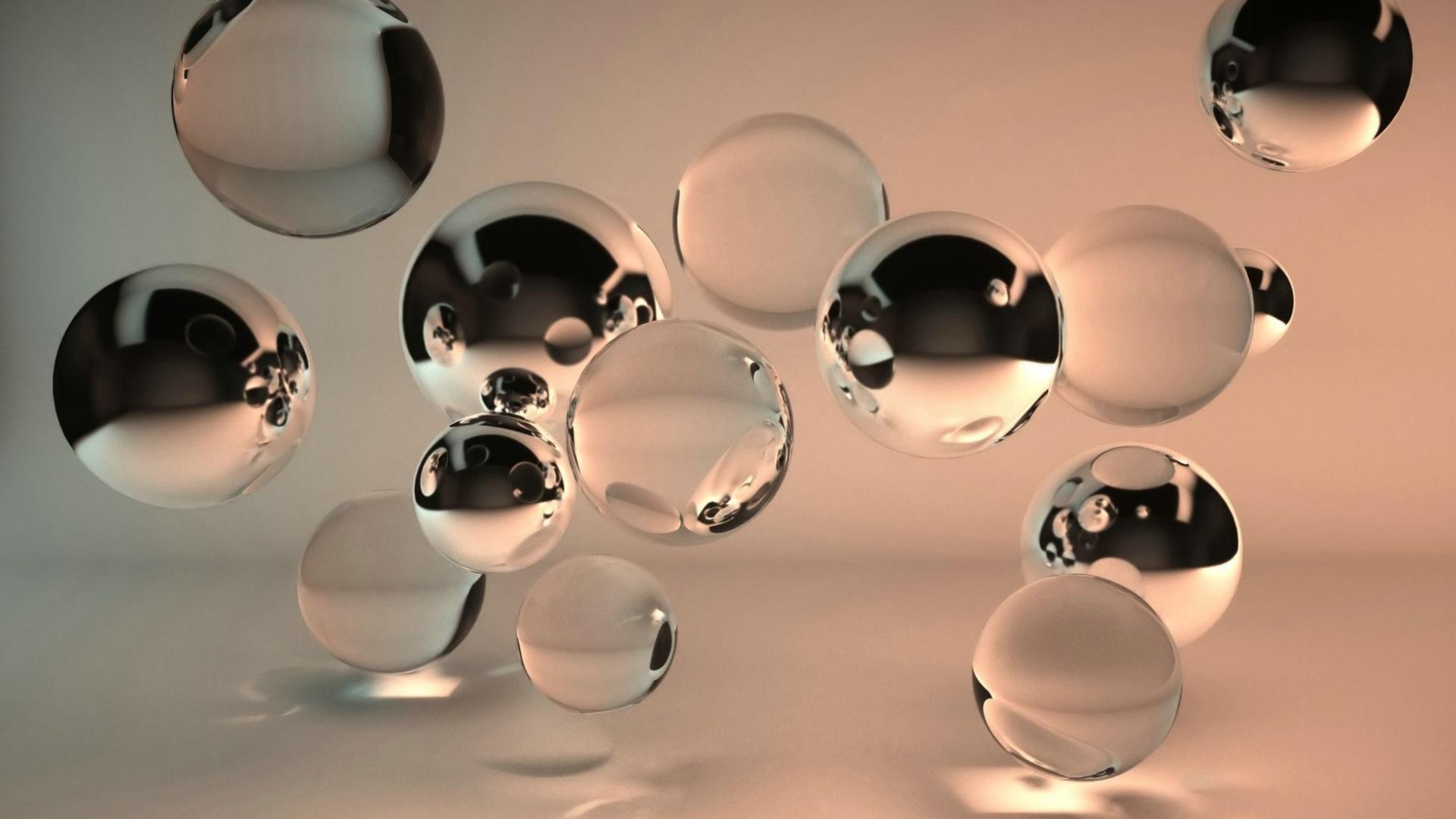 2 świąteczne niebieskie kule na białych wstążkach na niebieskim tle z białymi płatkami śniegu w różnych rozmiarach