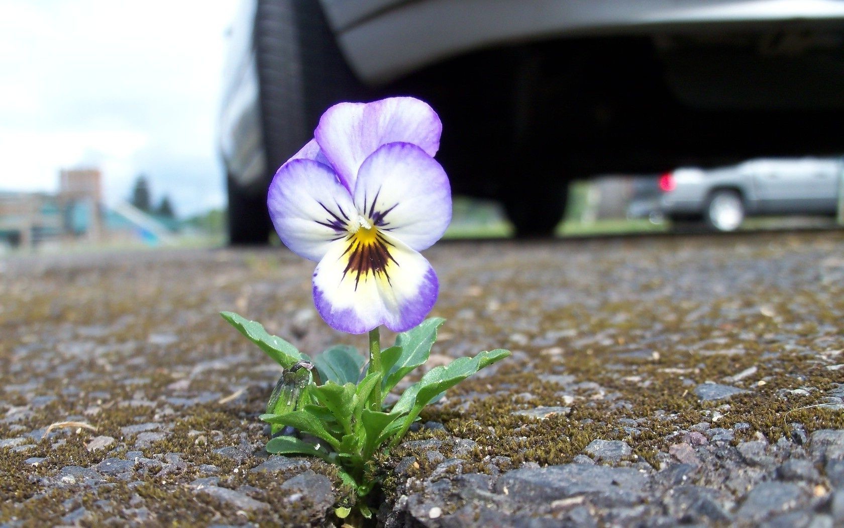 Mały szkarłatny kwiatek na drodze