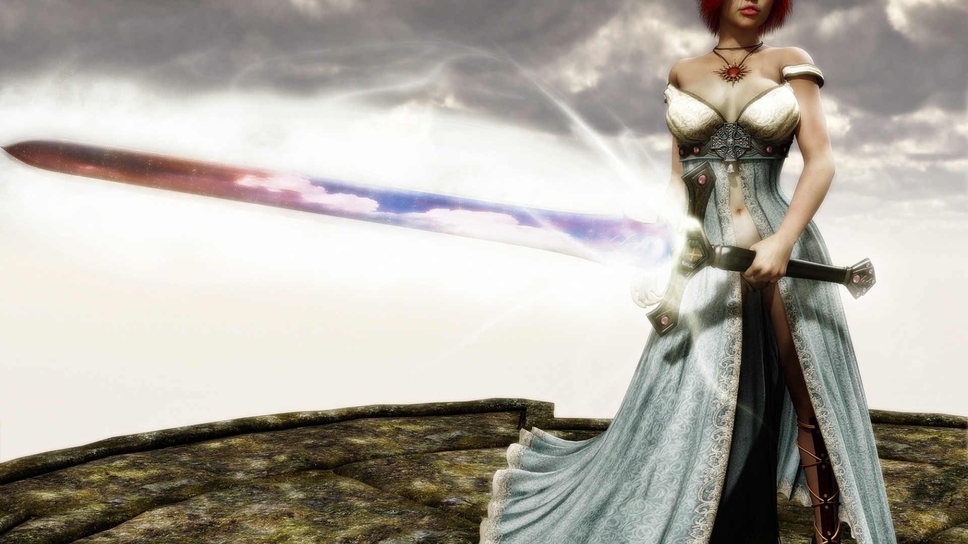 Wojowniczka z wielkim mieczem w polu