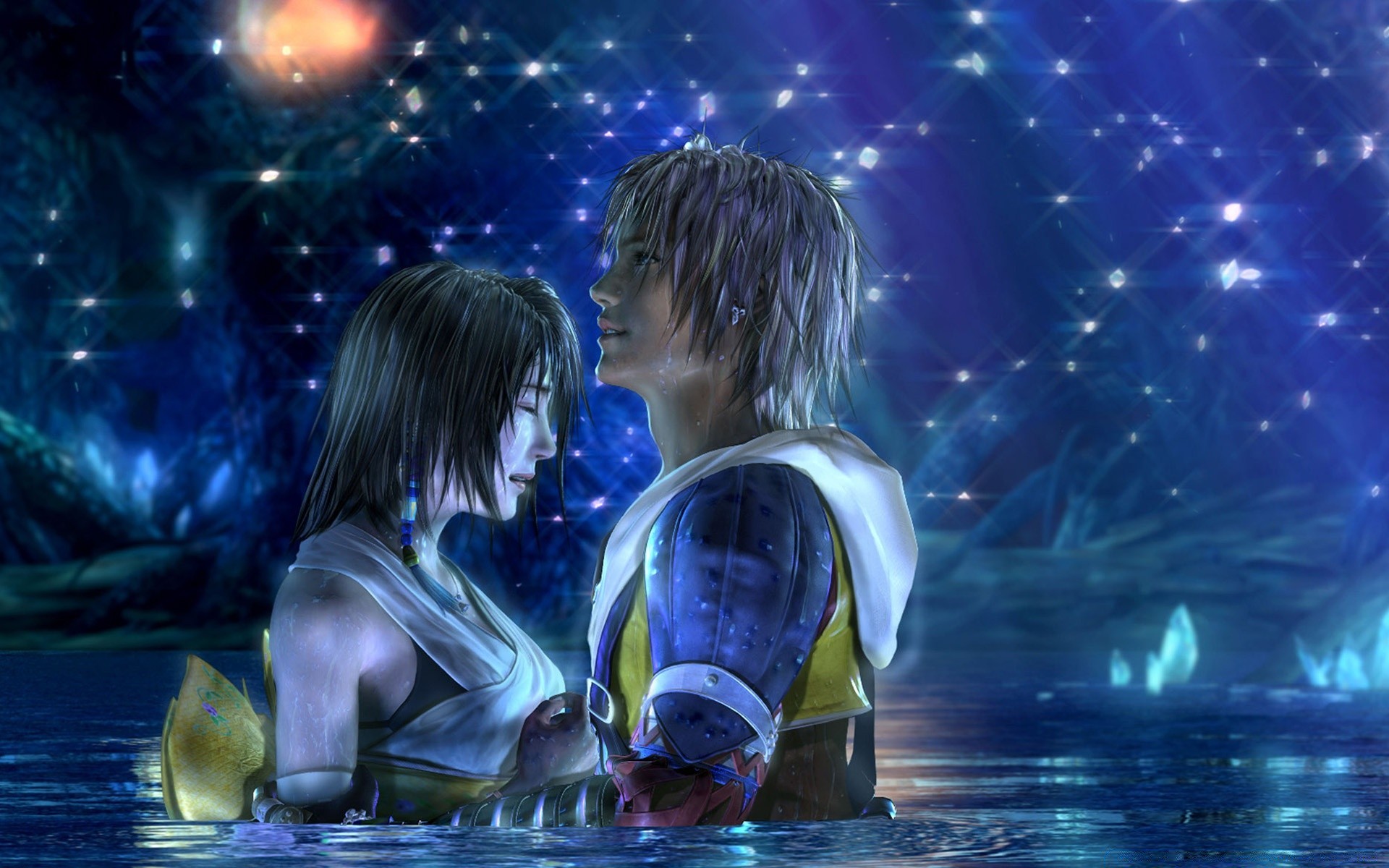 Piękna kobieta i mężczyzna w wodzie na tle nieba