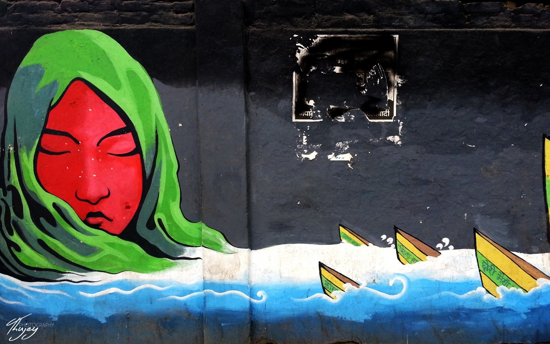 Fallout, Graffiti przedstawiające rozmnożoną postać w niebieskim garniturze z żółtym paskiem