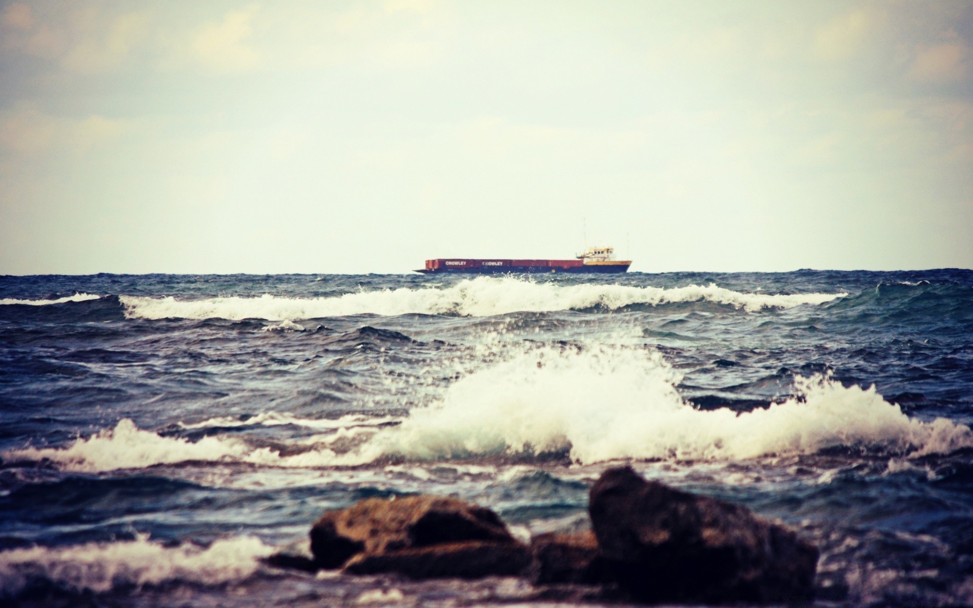 Potężny ocean uderza falą o brzeg, wiatr idzie swobodnie. Ile tu wody