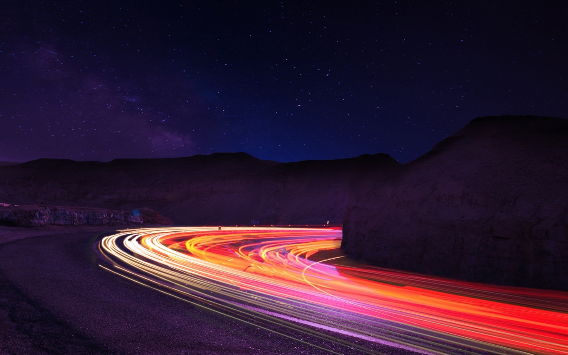 Samochód ze świecącymi reflektorami na tle zachodu słońcaSamochód ze świecącymi reflektorami na tle zachodu Słońca