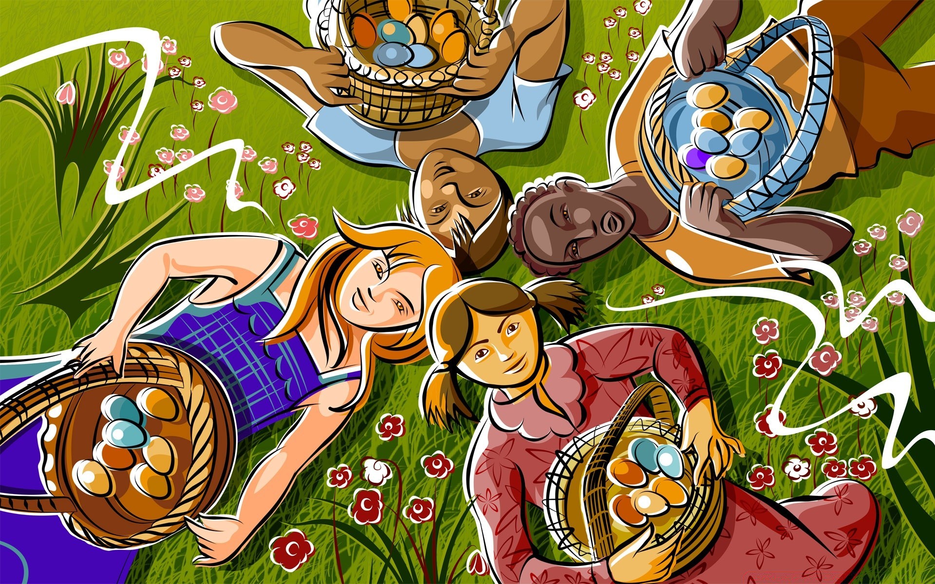 Ilustracja przyjaciół z pisankami