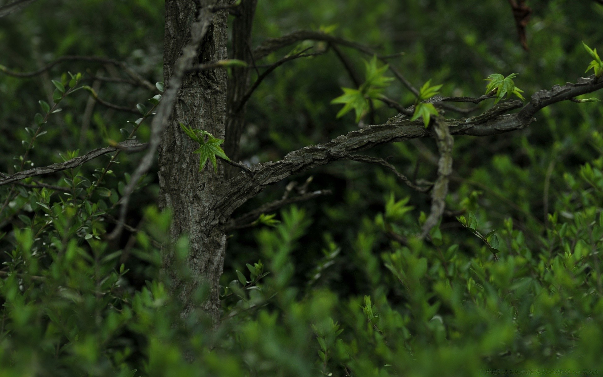 Zieleń na szarym drzewie w lesie