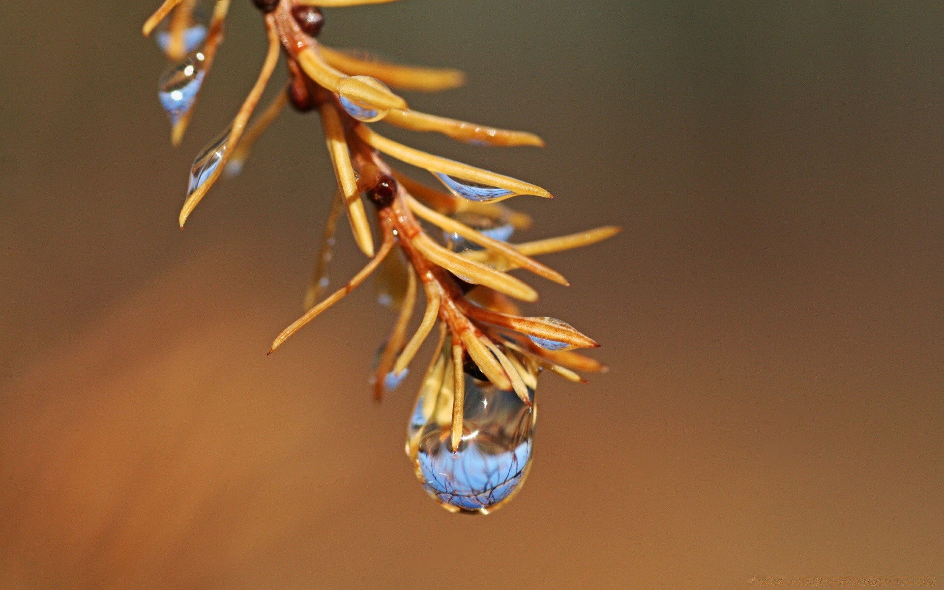 Zielona gałązka z liśćmi z dużymi kroplami wody