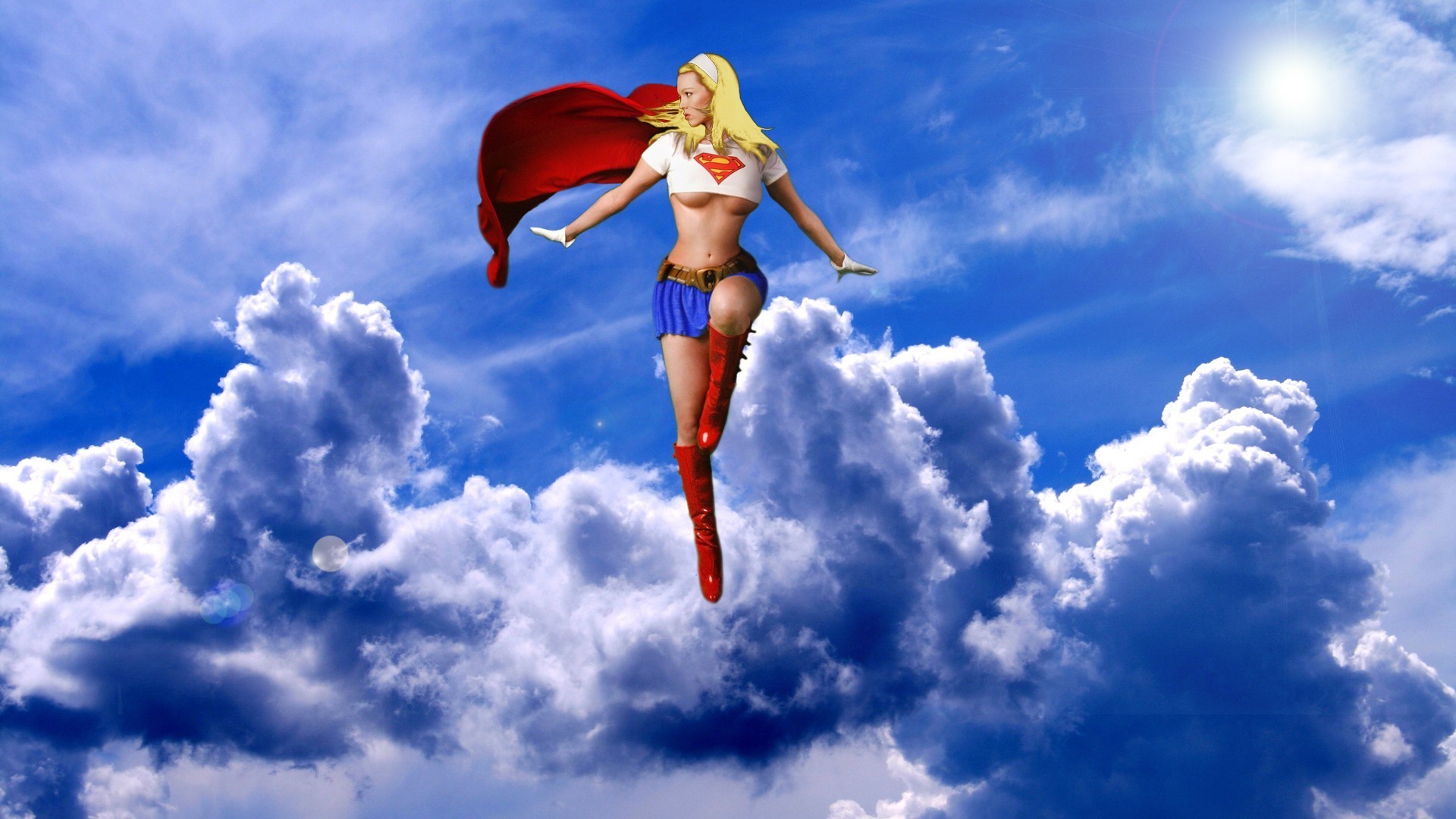 Kobieta w postaci Supermana na niebie