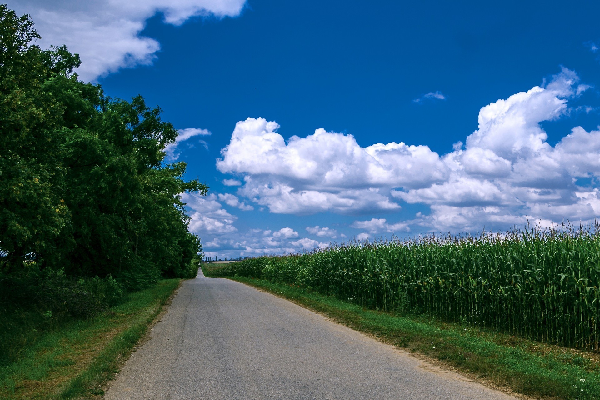 Droga wzdłuż zielonego pola i błękitnego nieba