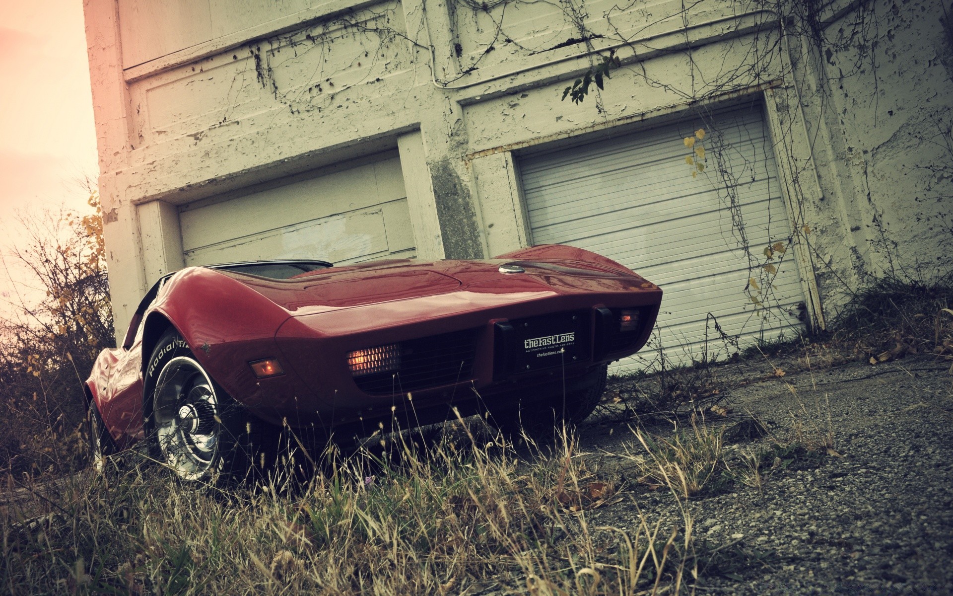 Czerwony samochód retro w opuszczonym miejscu