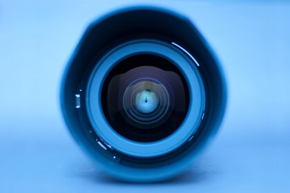 Niebieski obiektyw patrzy na aparat