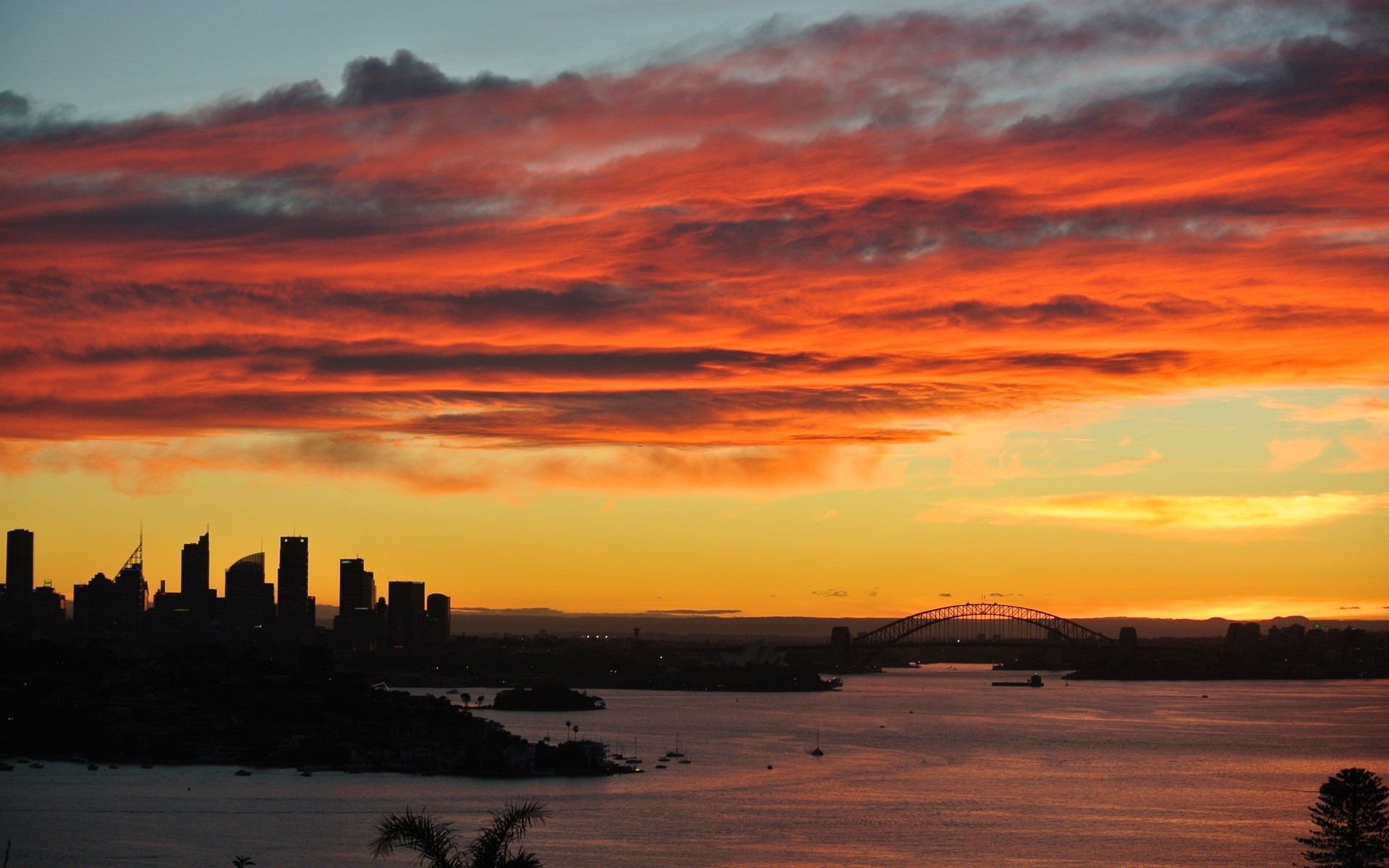 NOCNE MIASTO. Piękny czerwony zachód słońca