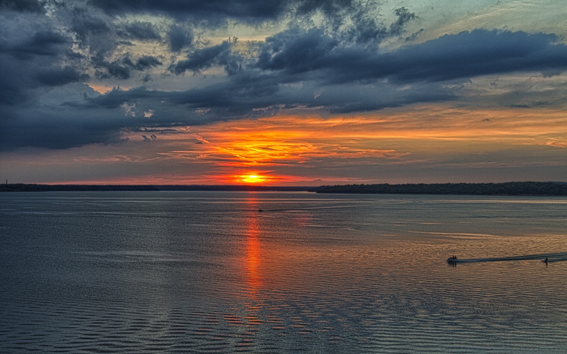 Zbiornik Wodny Ameryki. Zachód słońca nad wodą