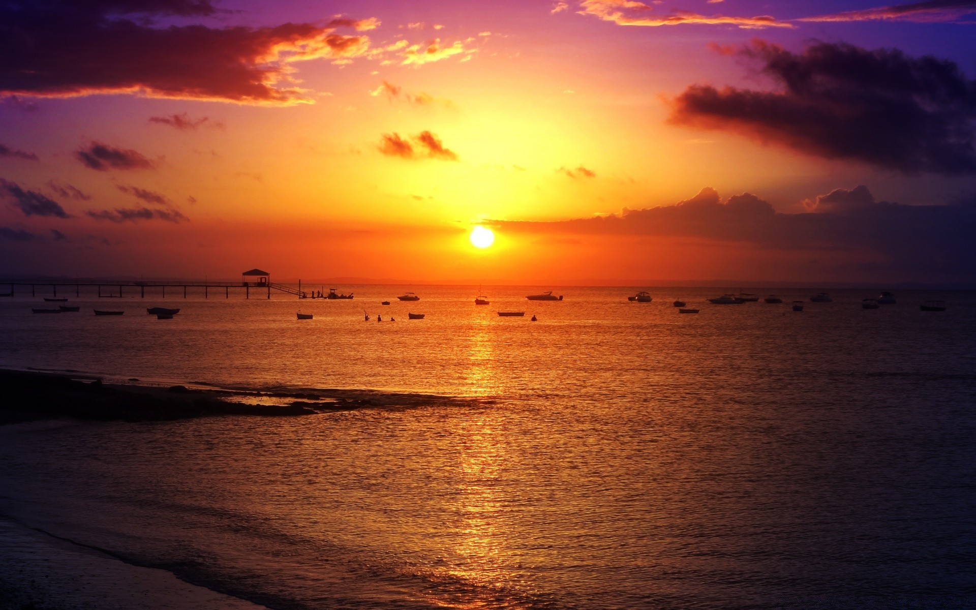 Płonący Zachód słońca na plaży
