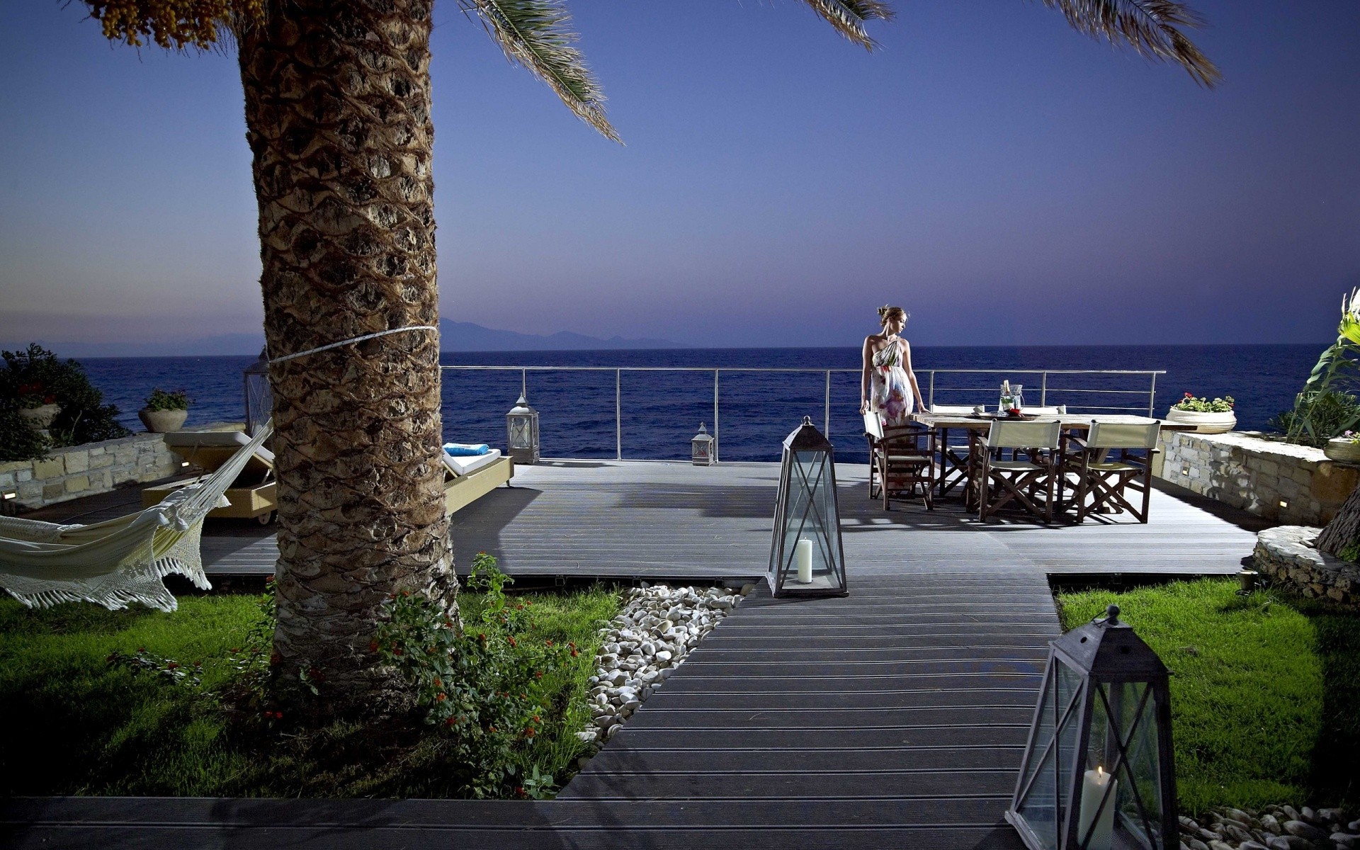 Dziewczyna w restauracji na nabrzeżu nad morzem