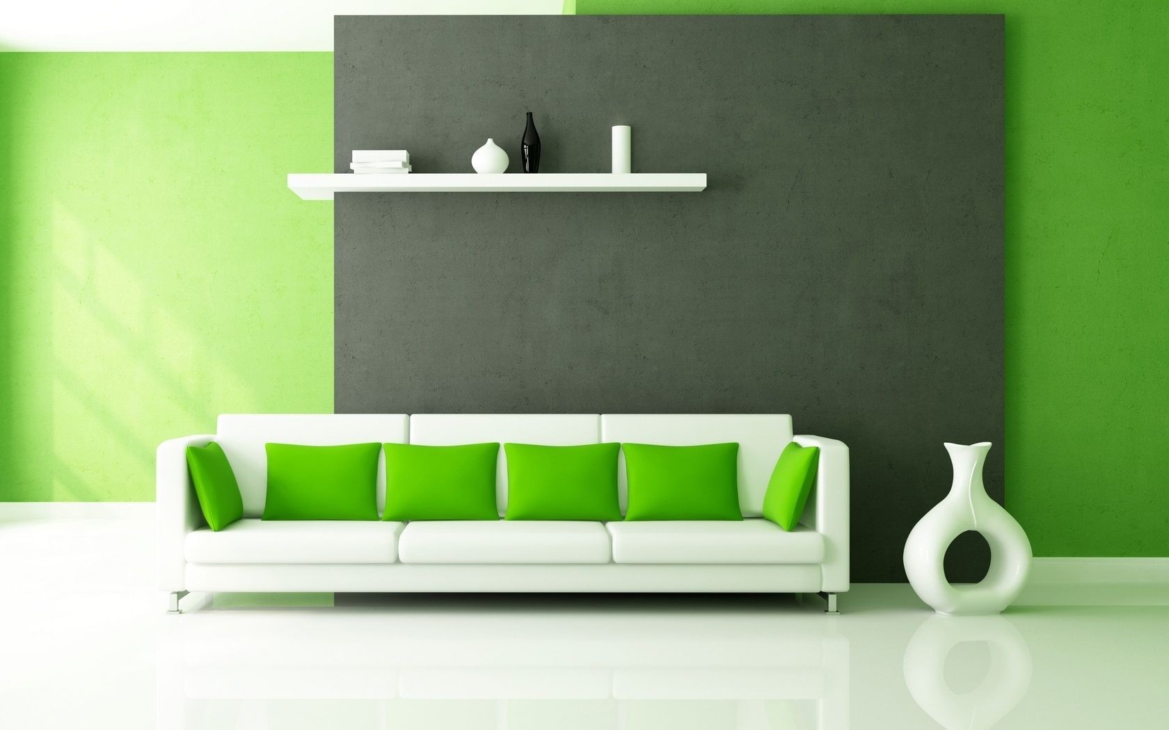 Zielone ściany i zielona sofa