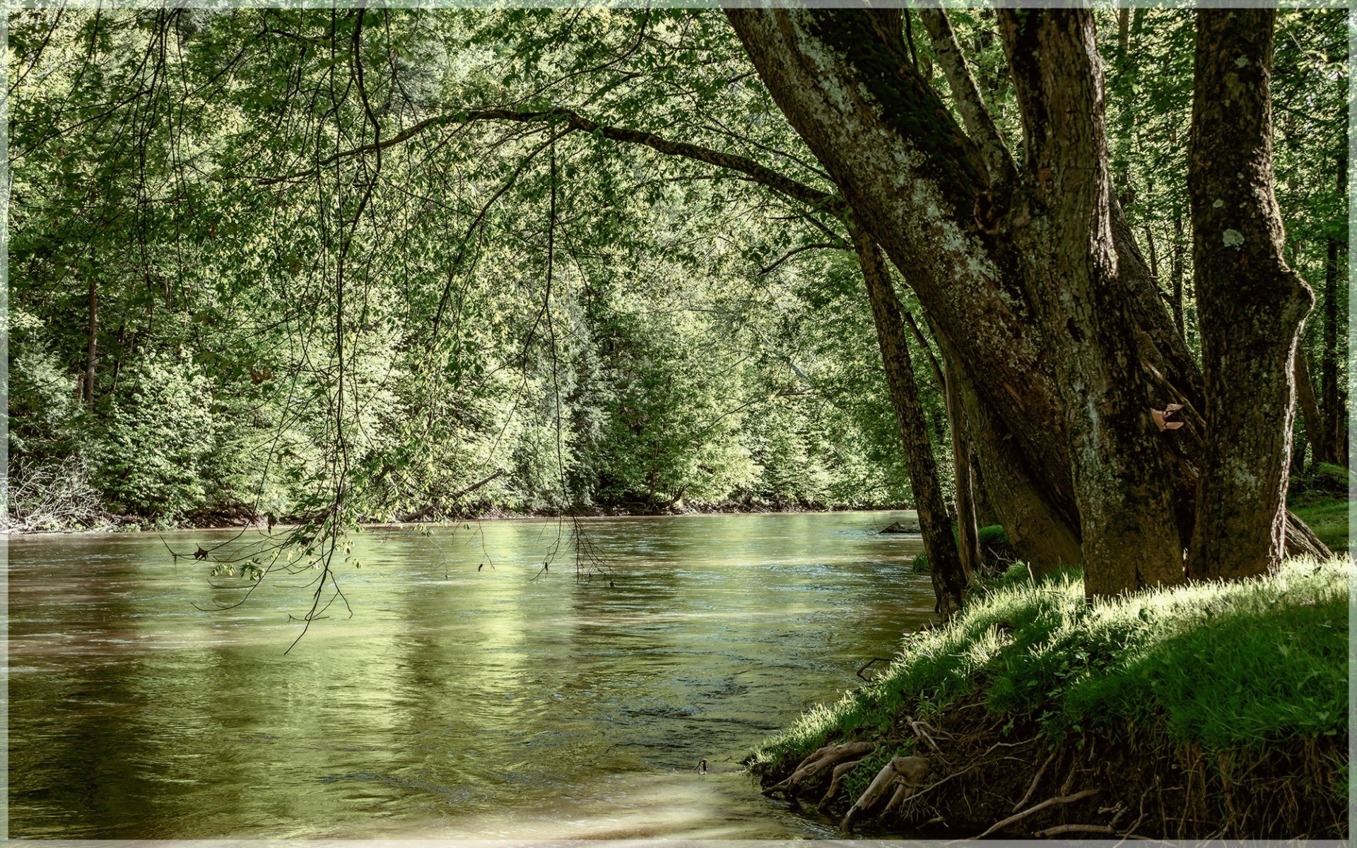 Krajobraz. Błękitne niebo. Chmury na niebie. Zielone drzewo. Zielona trawa