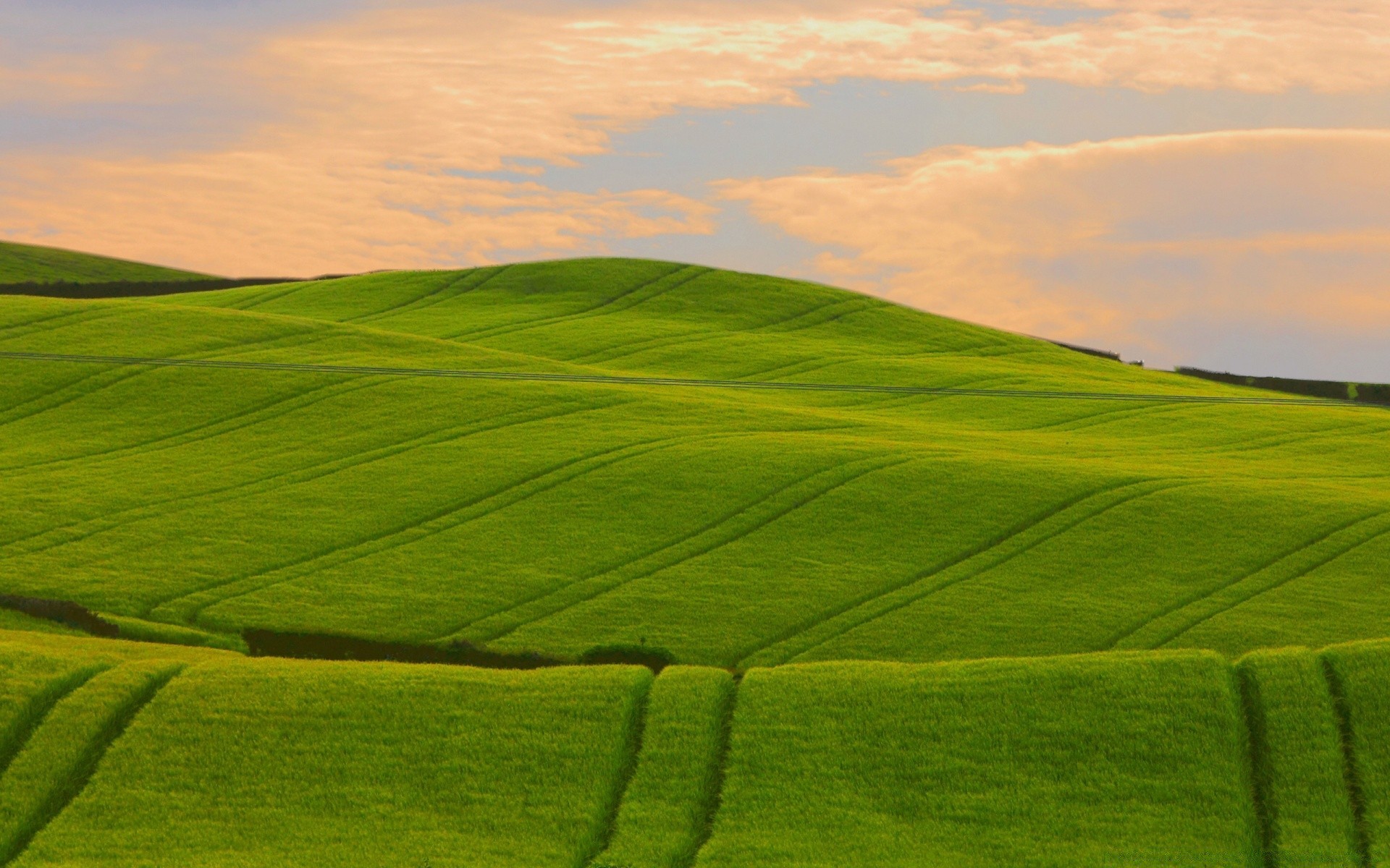 Mgliste niebo nad zielonym polem