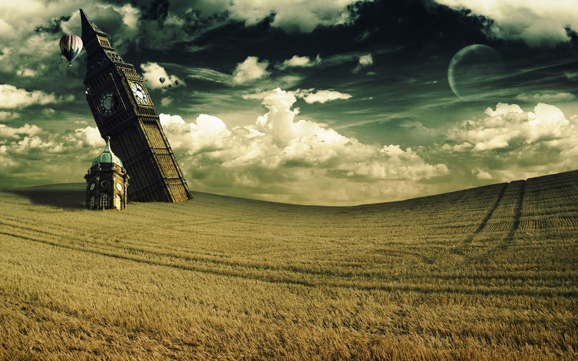 Krajobraz zielonej łąki i chmur, z których pada deszczKrajobraz zielonej łąki i chmur, z których pada deszcz