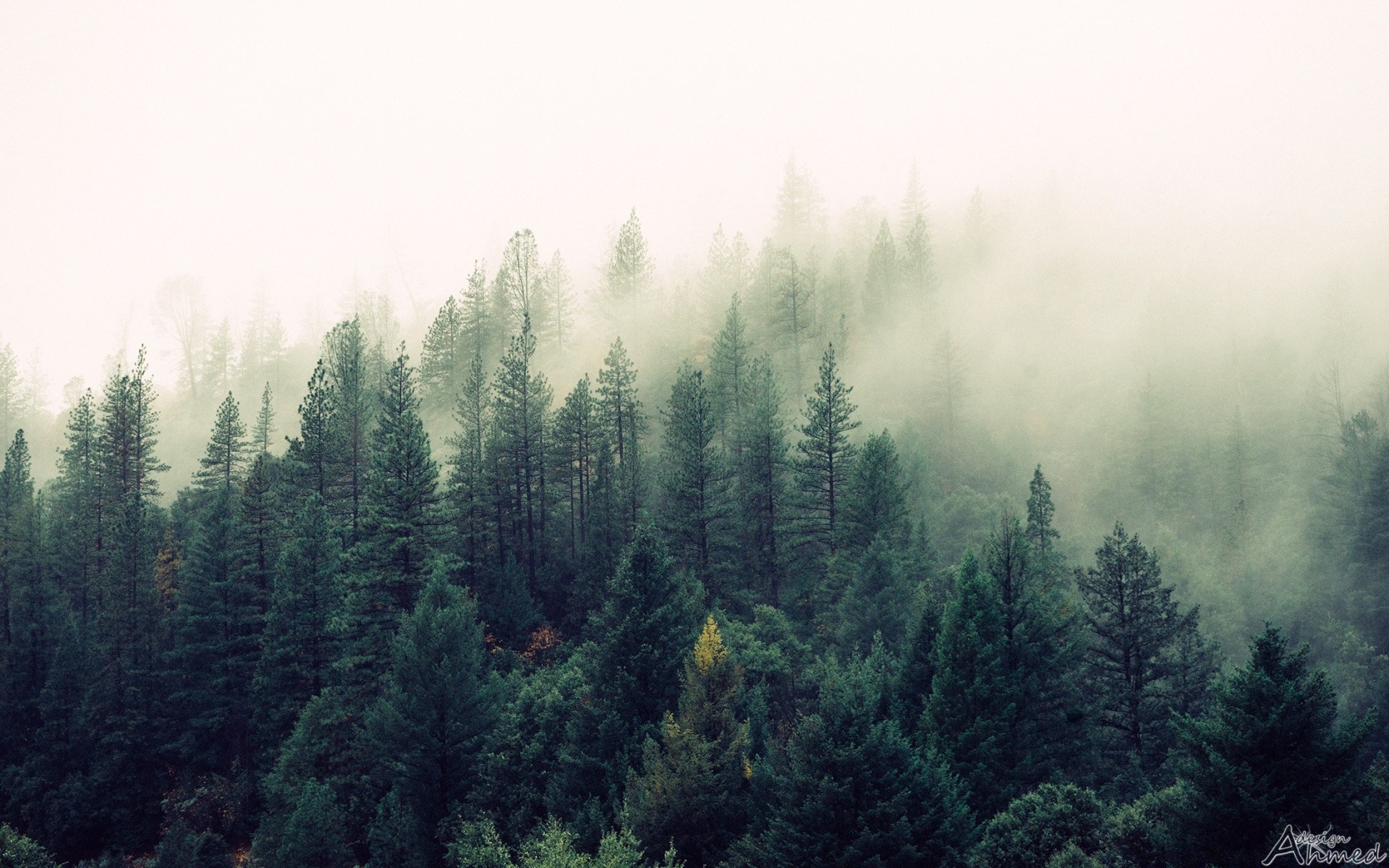 Las iglasty w gęstej mgle