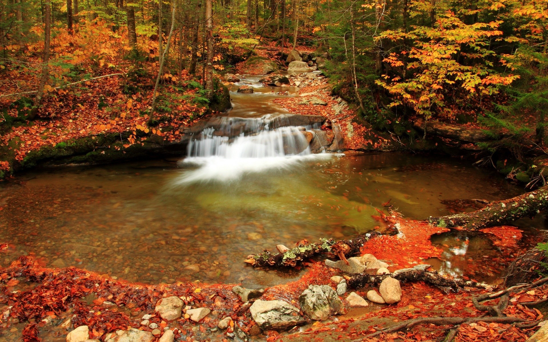 Piękny jesienny las i strumień