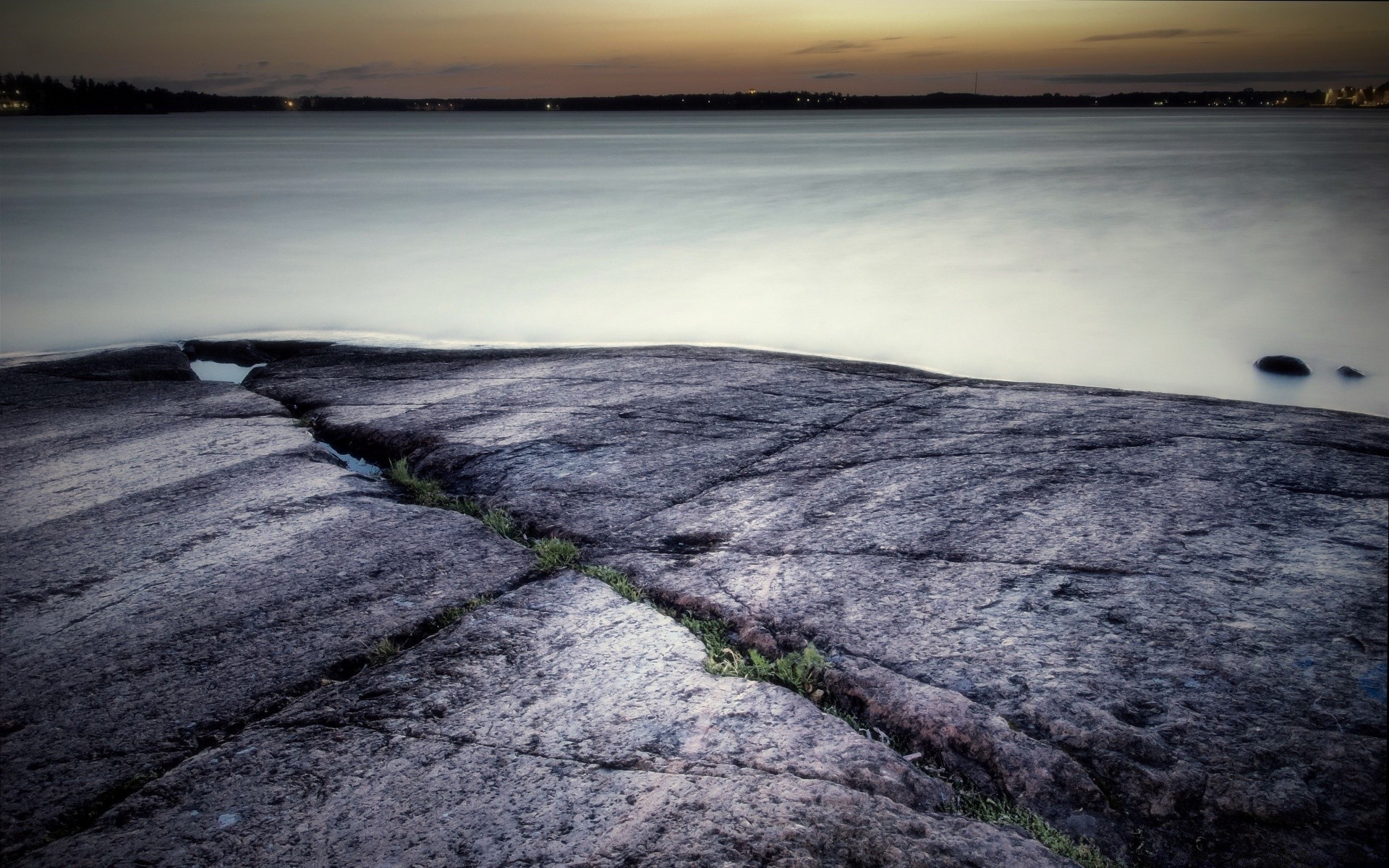 Krajobraz o zmierzchu, miasto na horyzoncie