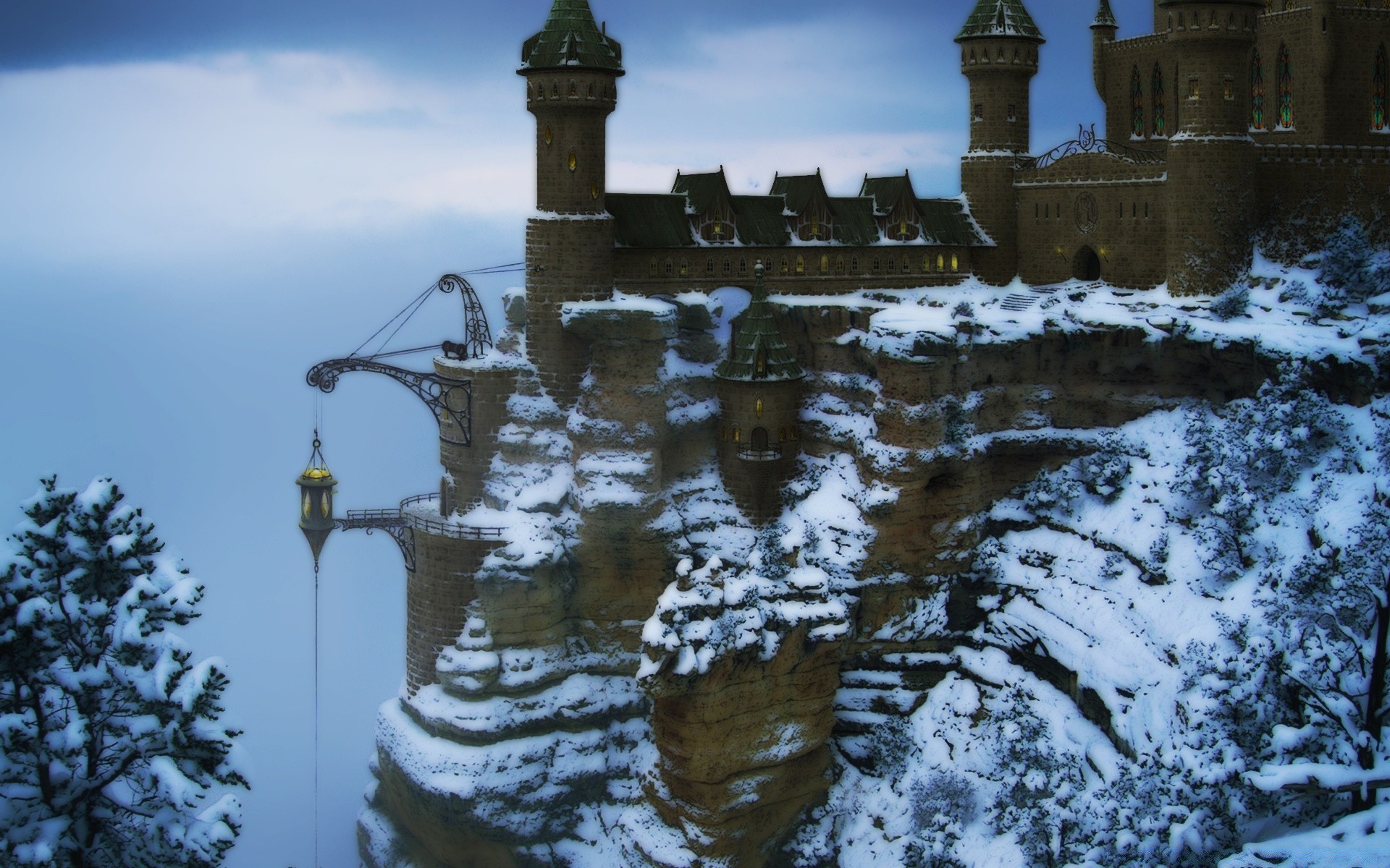 Zimowy krajobraz w Holandii. Architektura Hagelo