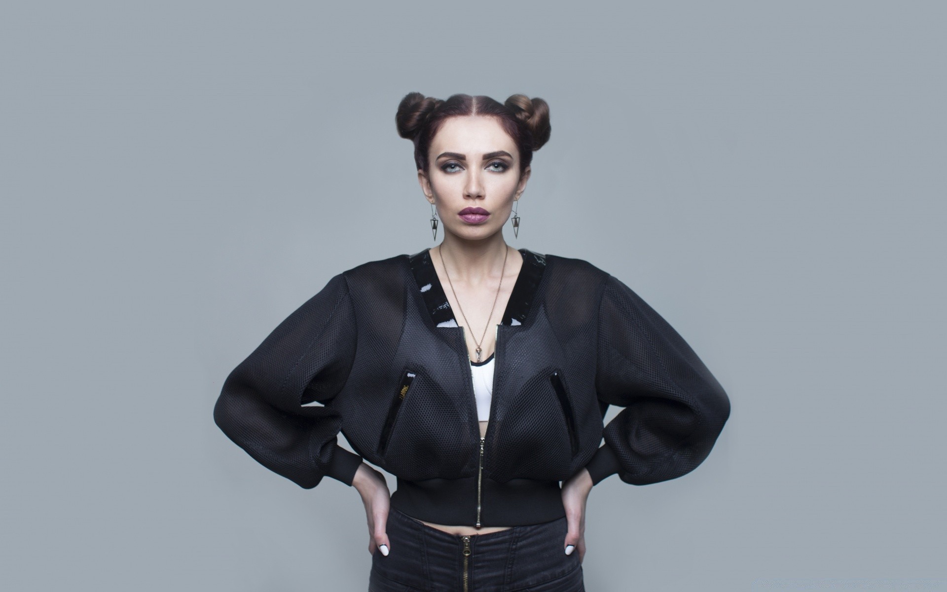 Piosenkarka w czarnych dżinsach i kralkach na głowiePiosenkarka w czarnych dżinsach i kralkach na głowie