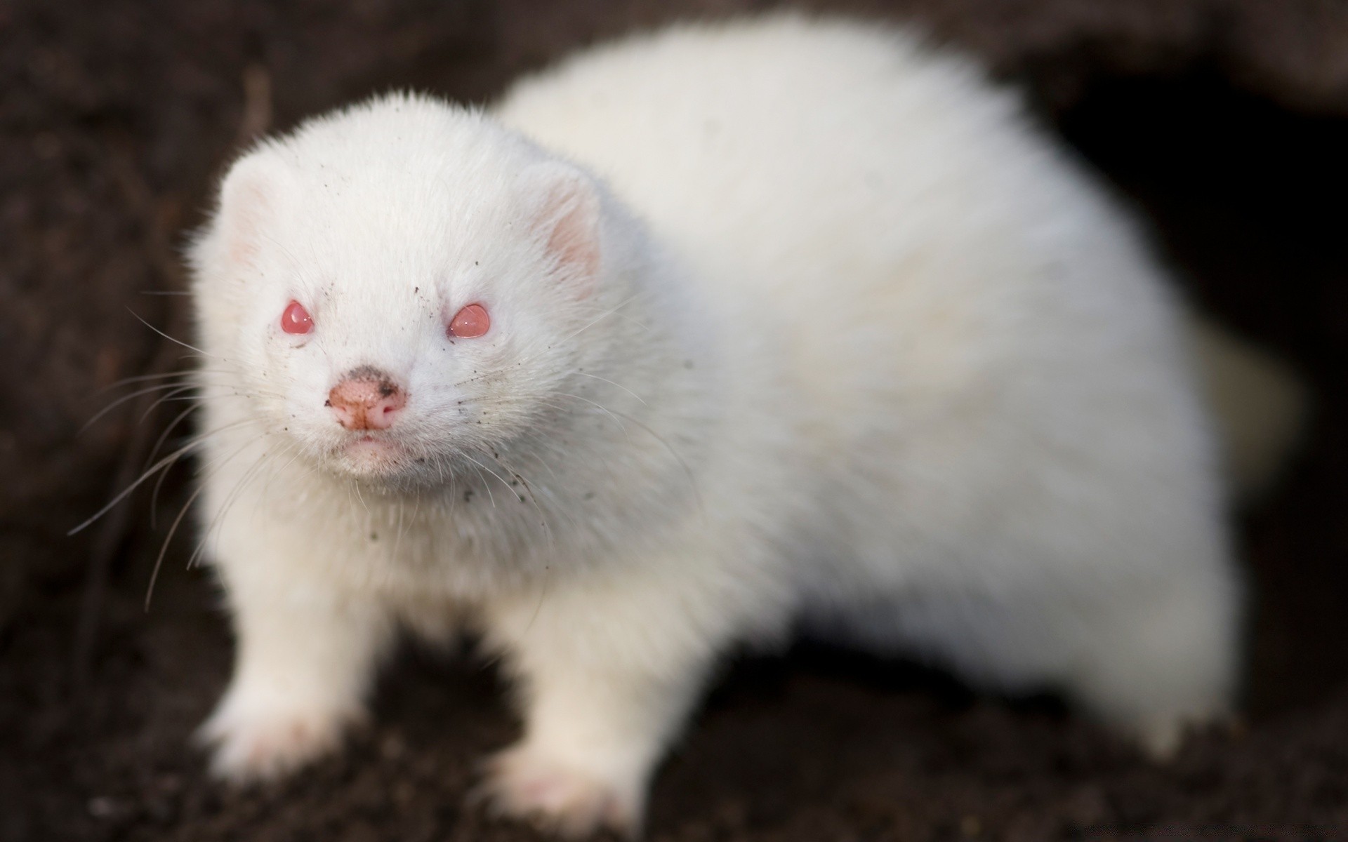 Biały gryzoń z czerwonymi oczami - tapety na pulpit